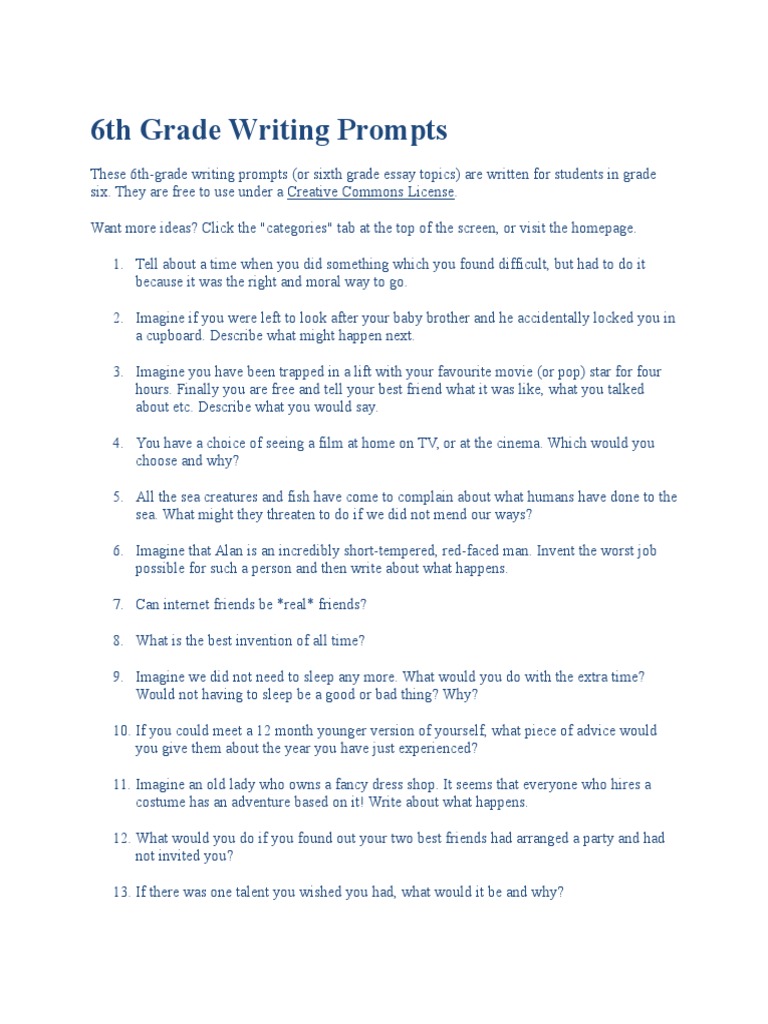 6th Grade Writing Prompts PDF
