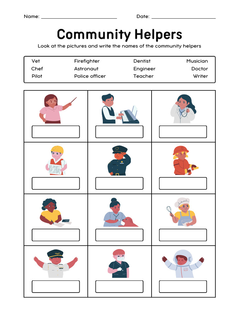 Take clues from the uniforms and equipment as you write the. Our community helpers worksheets pdf are ideal for kindergarten and grade 1 kids. Discover the roles of community helpers with our engaging worksheets for children aged 2 to 6 in playschool and kindergarten. What does the baker need? Community helpers worksheets for kids.