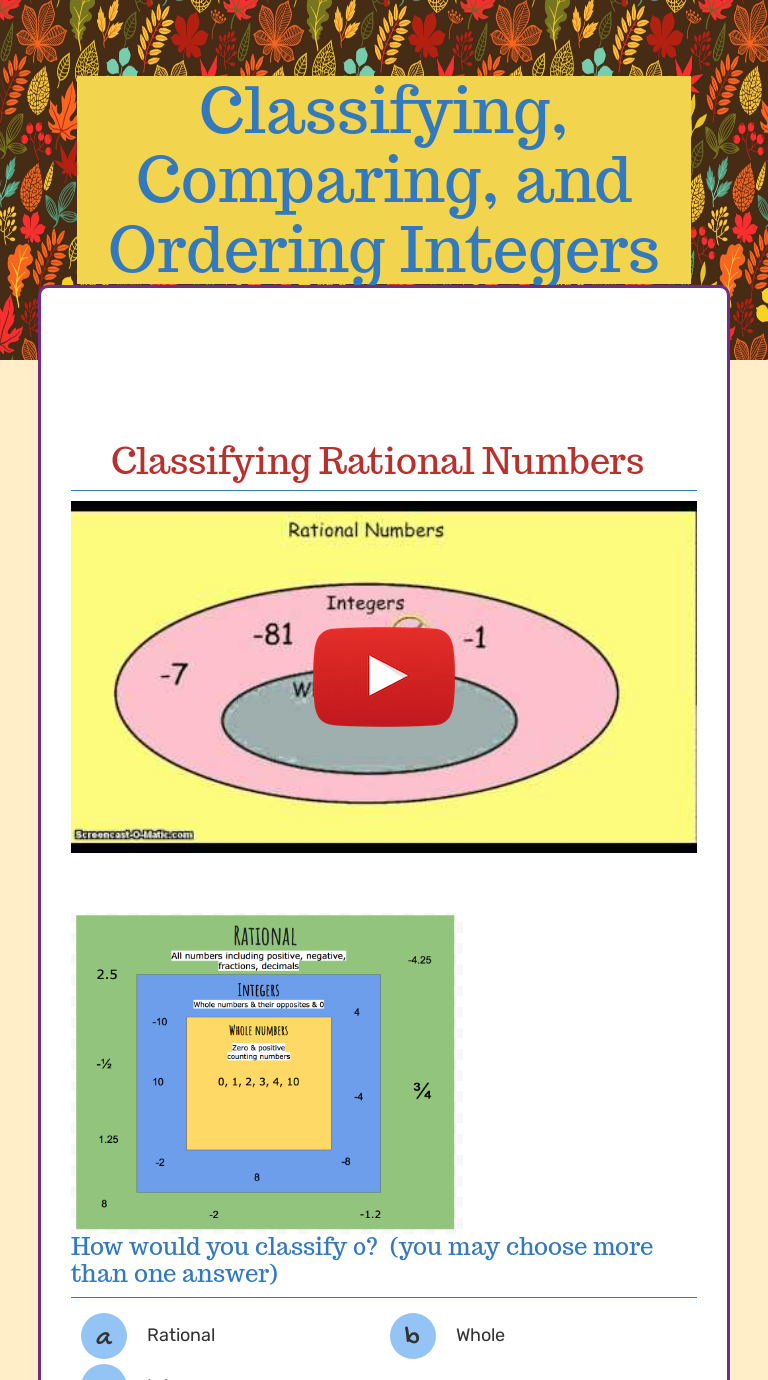 Classifying, Comparing, and Ordering Integers Interactive Worksheet