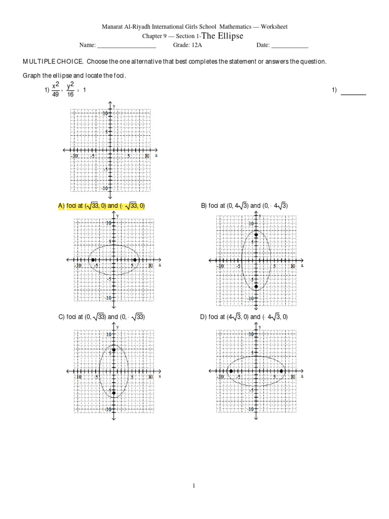 Fillable Online Ellipse Worksheet SOLUTION KEY.pdf Fax Email Print