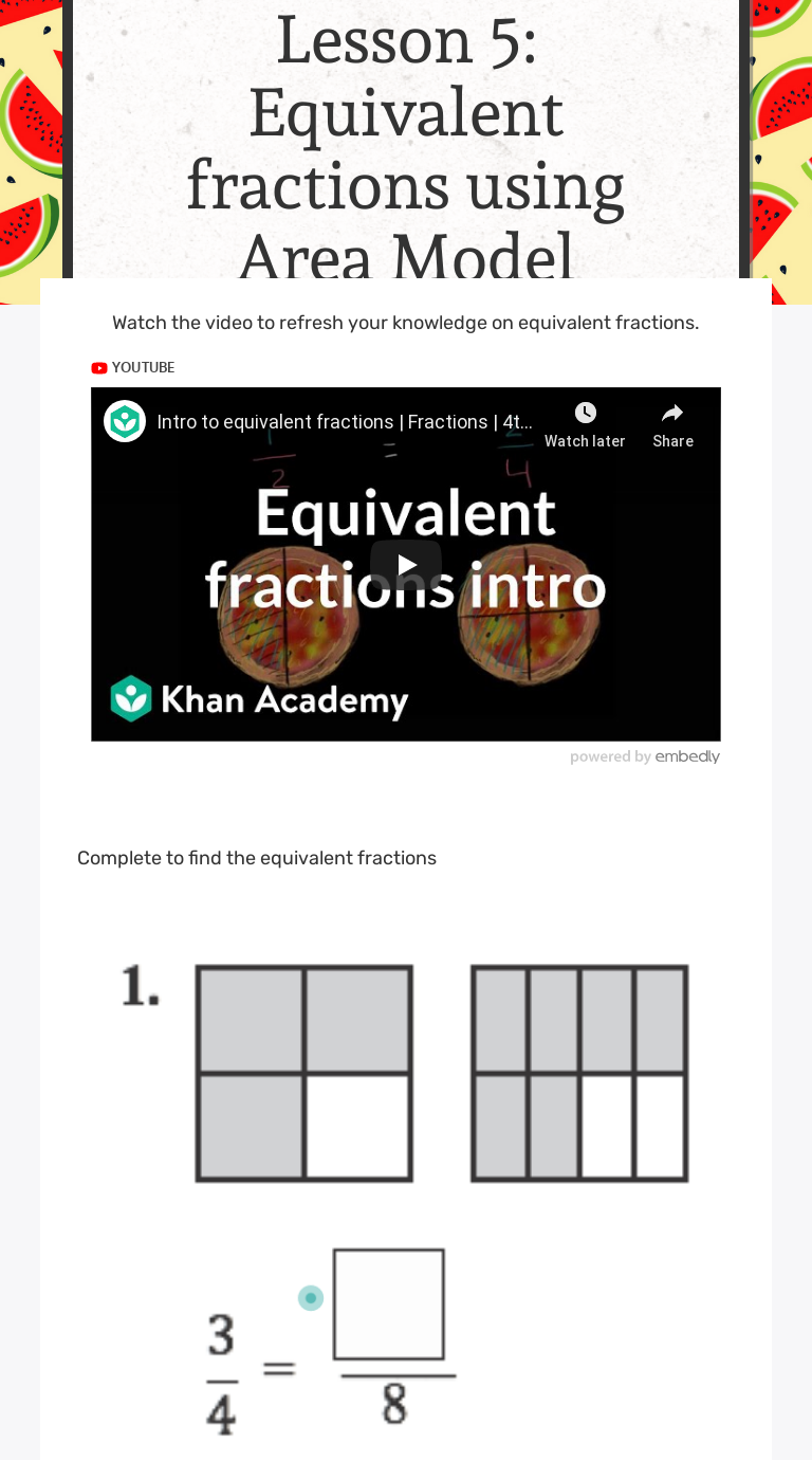 Lesson 5 Equivalent fractions using Area Model Interactive Worksheet