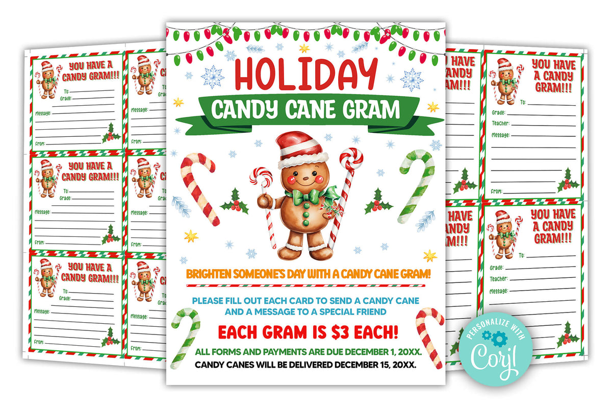 DIY Holiday Candy Cane Gram Flyer Template, Xmas School PTO PTA