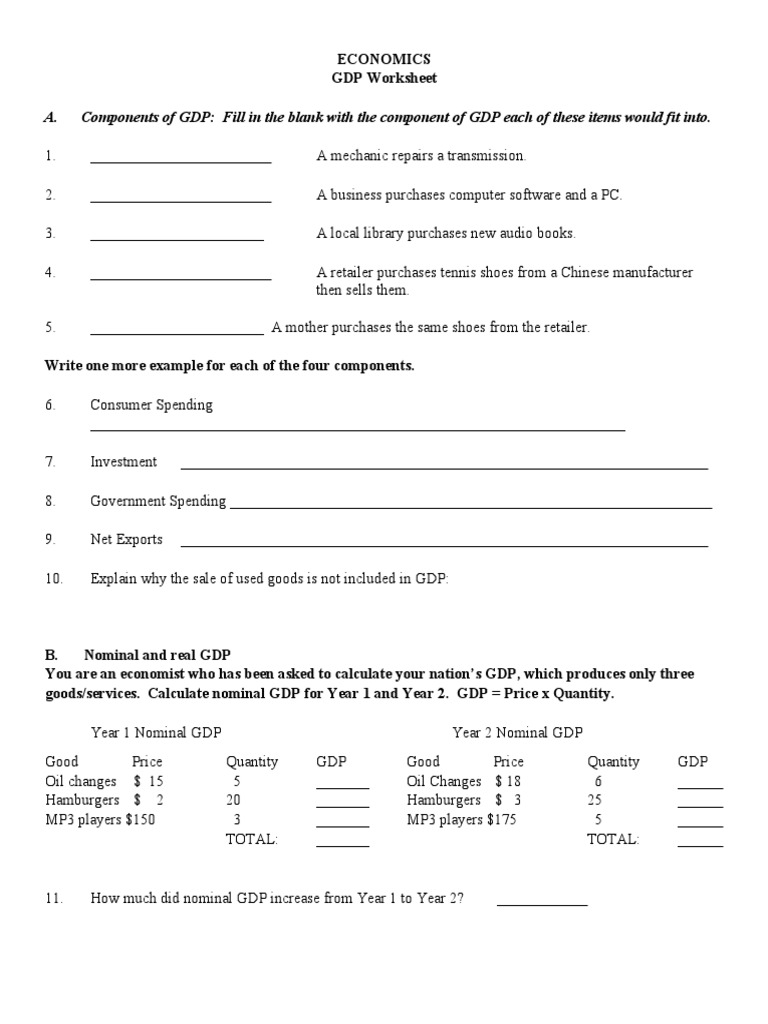 Gdp Practice Worksheet - Nominal gdp to real gdp in that year. The gdp deflator is a type of price index, or form of measurement, that tracks changes in the value.