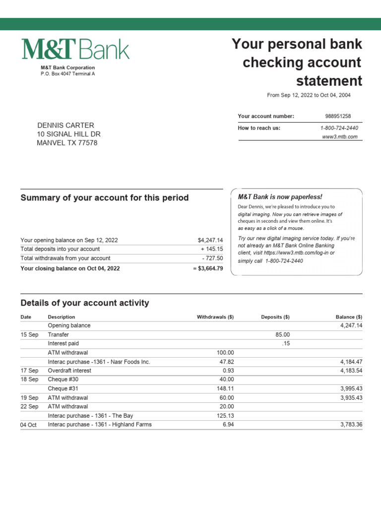 In this article, we’ll talk about how to convert m&t bank statement to excel and. M&t's principal banking subsidiary, m&t bank, provides banking products and. Easily access and organize statements and notices for your m&t accounts for up to seven. The purpose of an m&t bank statement is to provide customers with a detailed record of.