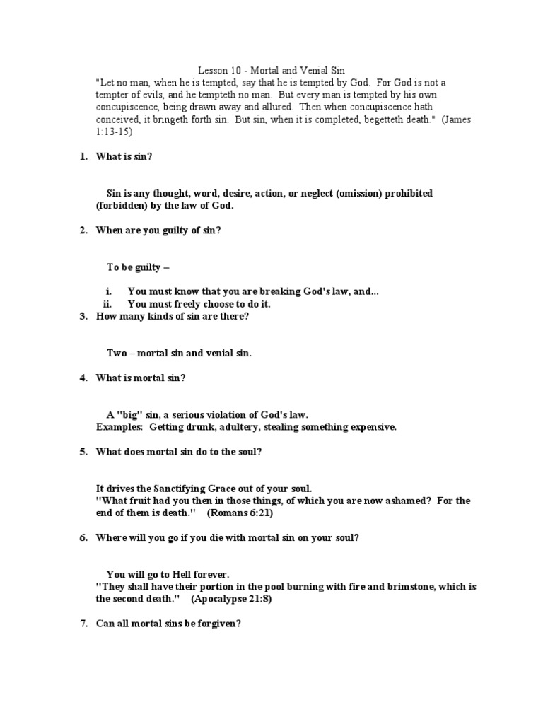Showing 5 worksheets for mortal sin versus venial sin. Worksheets are mortal venial sin, mortal and. Worksheets are mortal venial sin, mortal and venial sin work, reconciliation guide. Mortal and venial sin quiz for 5th grade students. Venial sin | definition, characteristics & lists or print the worksheet to practice offline.