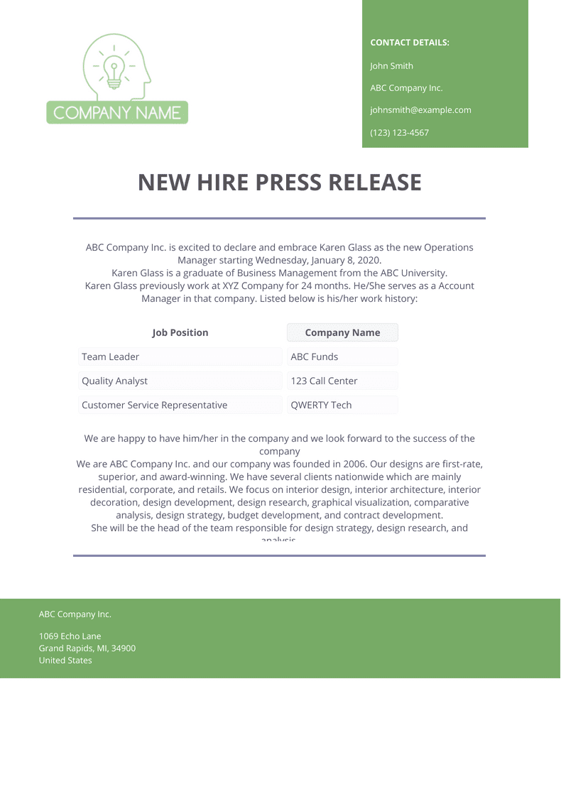 New Hire Press Release Copy/Paste This Format and Example