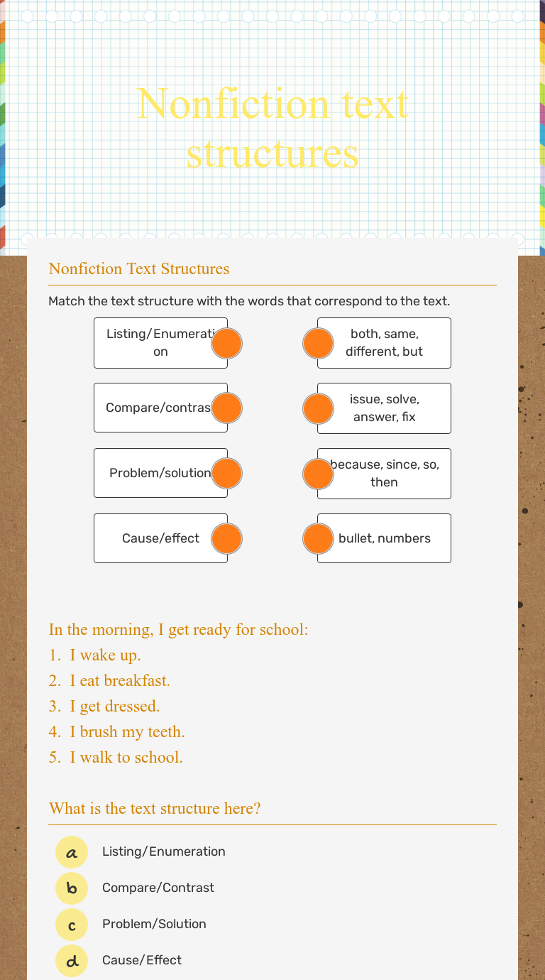 Worksheets are non fiction unit, resources for text structure, nonfiction text. Showing 8 worksheets for nonfiction text structures. Worksheets are non fiction unit, resources for text structure, nonfiction text. In this text structure worksheet, students will read five nonfiction passages about the american war for independence. Our text structure worksheets offer an essential resource for educators, parents, and students seeking to master this fundamental skill.