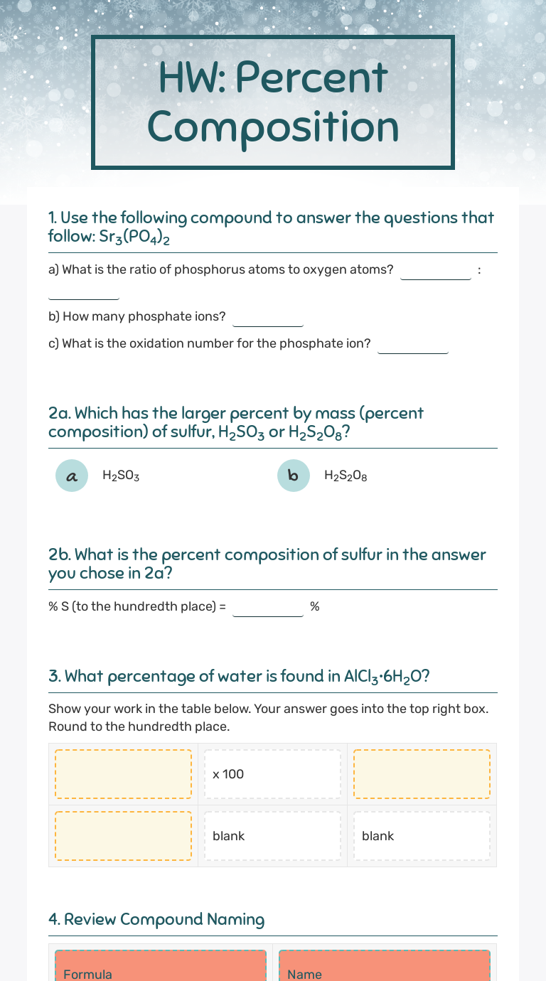 HW Percent Composition Interactive Worksheet by Joyce Hong Wizer.me