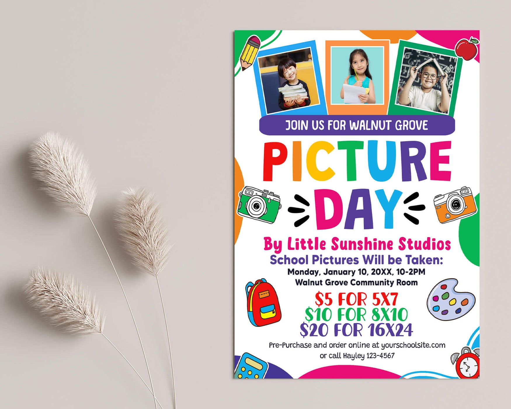 In this article, we will provide you with a variety of picture day flyer templates. Design your own back to school picture day flyer online with mycreativeshop & easily print it. Create free picture day flyers, posters, social media graphics and videos in minutes. Create free picture day flyers, posters, social media graphics and videos in minutes.