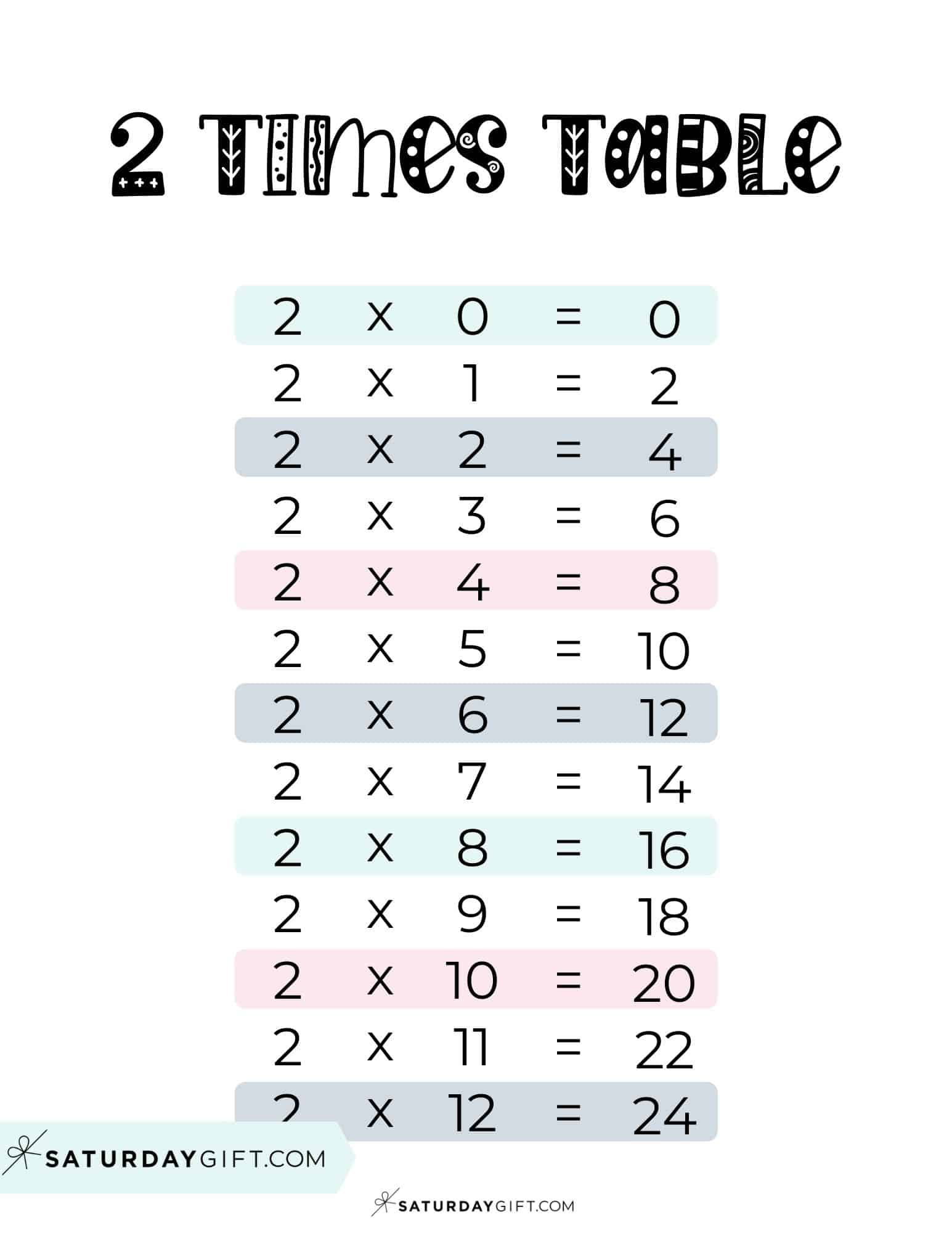 2 Times Table Chart 15 Cute & Free Printables SaturdayGift