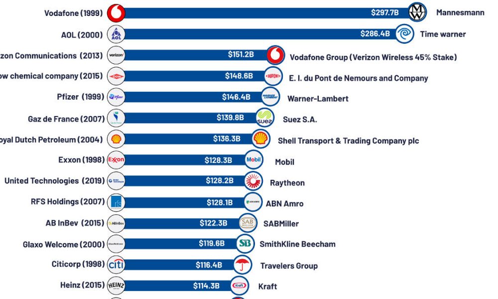 The Largest Mergers of All Time, Adjusted for Inflation Chartistry