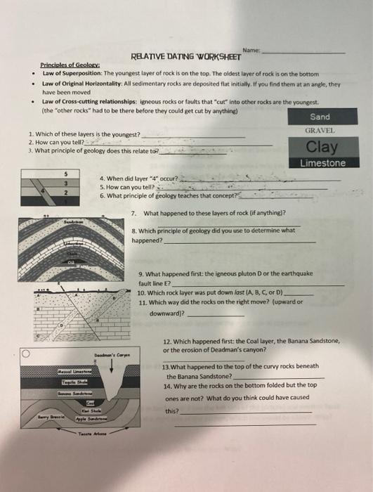 Test your knowledge of relative dating principles and methods with this worksheet. A worksheet to test your understanding of relative dating principles and methods. The rock layers below show this abnormality. It includes questions, diagrams, and activities about rock. Underlie absolute dating of geologic materials;