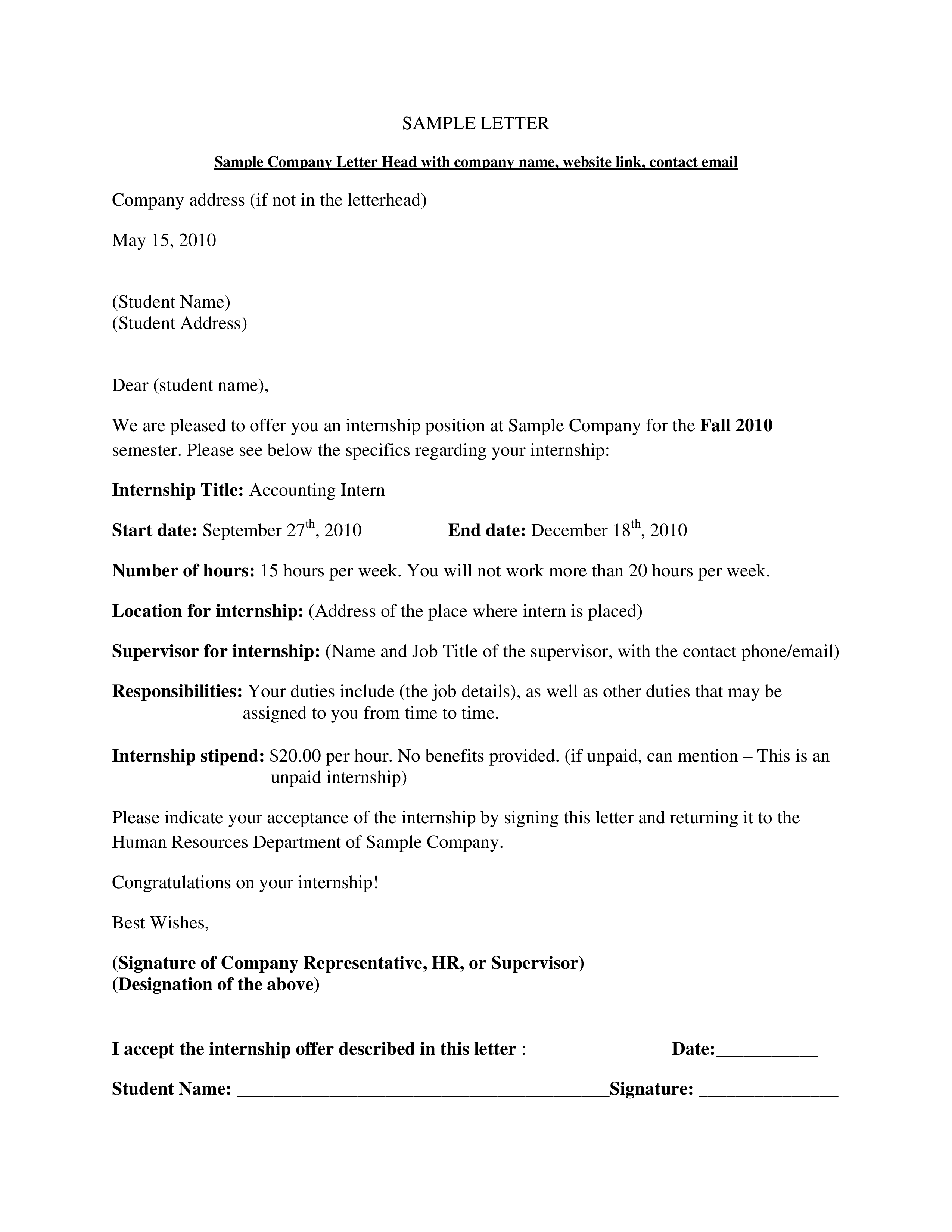 30 Best Internship Offer Letters (Paid & Unpaid) TemplateArchive