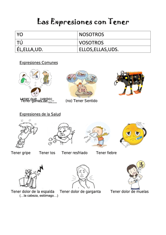 Las Expresiones Con Tener Spanish Worksheet Template printable pdf download