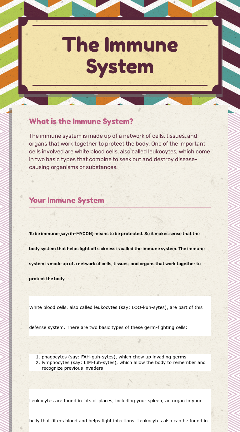 Teacher planet offers activities and lesson plans so you can really integrate a lesson on the immune system into your overall unit. This worksheet complements the click and learn “cells of the immune system” developed in conjunction with the 2007 holiday lectures on. The immune system is the body system that defends people from bacteria and viruses (all germs, really!).