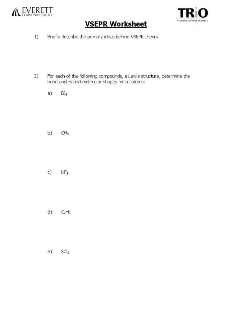 VSEPR Worksheet 1) What Is The Main Idea Behind VSEPR Theory