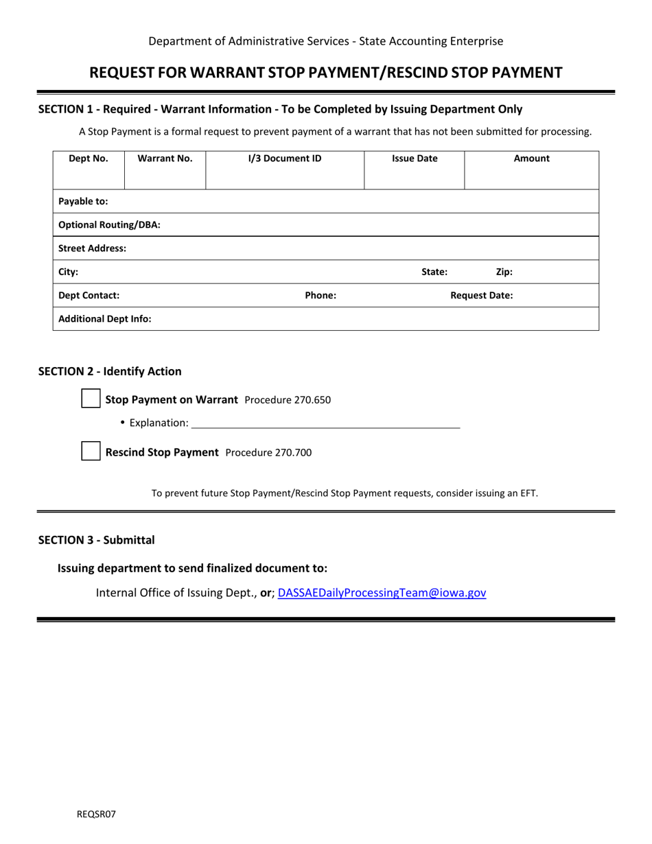 Form REQSR07 Fill Out, Sign Online and Download Fillable PDF, Iowa