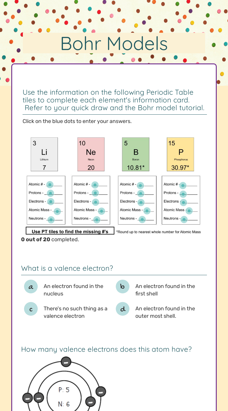 Bohr Models Interactive Worksheet by Tunya Dhe Wizer.me