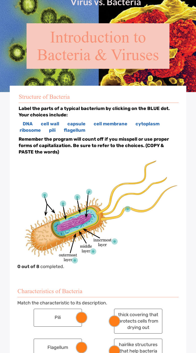 Introduction to Bacteria & Viruses Interactive Worksheet by Tanya